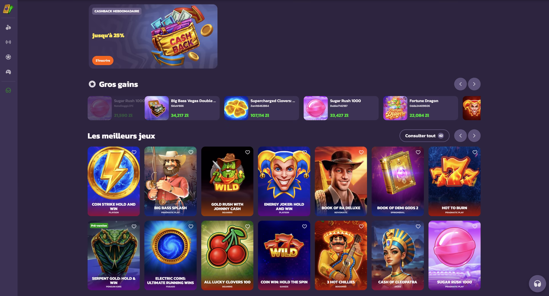 - Jeux populaires et exclusifs: Plinko Coolzino, Aviator, Sweet Bonanza, Book of Dead et plus de 1500 titres.